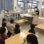 11月の音楽サークルタイムの様子をお伝えします♪ 今月のお歌は「大きな栗の木の下で」と「ドレミのうた」でした。 「大きな栗の木の下で」では、両手を頭の上に乗せ大きな栗を表現する子どもたち‼ 曲 …続きを見る