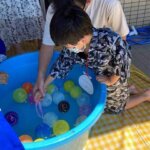 7月から始まった水遊び、今年の夏も暑く冷たい水遊びでとっても気持ちよく過ごしました。 スクワラル組ラビット組のお友だちは、タライの中に入った水を玩具を使ってすくってみたり、カップに移してみたり、玩具や道具が …続きを見る