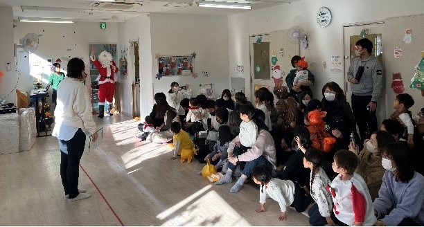 素敵なプレゼントを届けてくれたサンタさんに、子どもたちは「サンタさんだ!」と目を輝かせて大興奮でした。