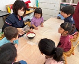「Do you like~?」で好きな食べ物を聞いたり、「Yes, I do. / No, I don’t.」で答えたりすることも上手になった子どもたちは、英語サークルタイムの中で園内を歩き回って園長先生や給食の先生へのインタビューに挑戦!