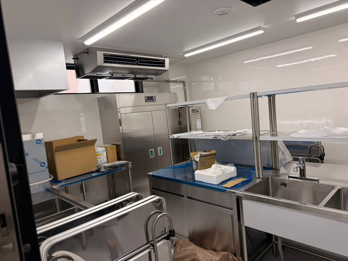 照明や大型調理器具の搬入も終わり、完成のカウントダウンが始まりました。