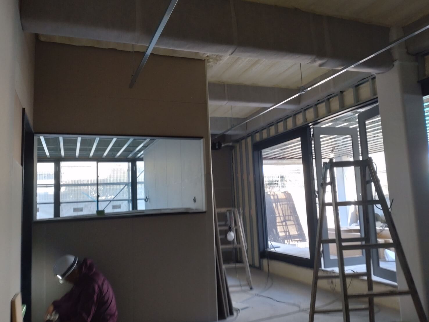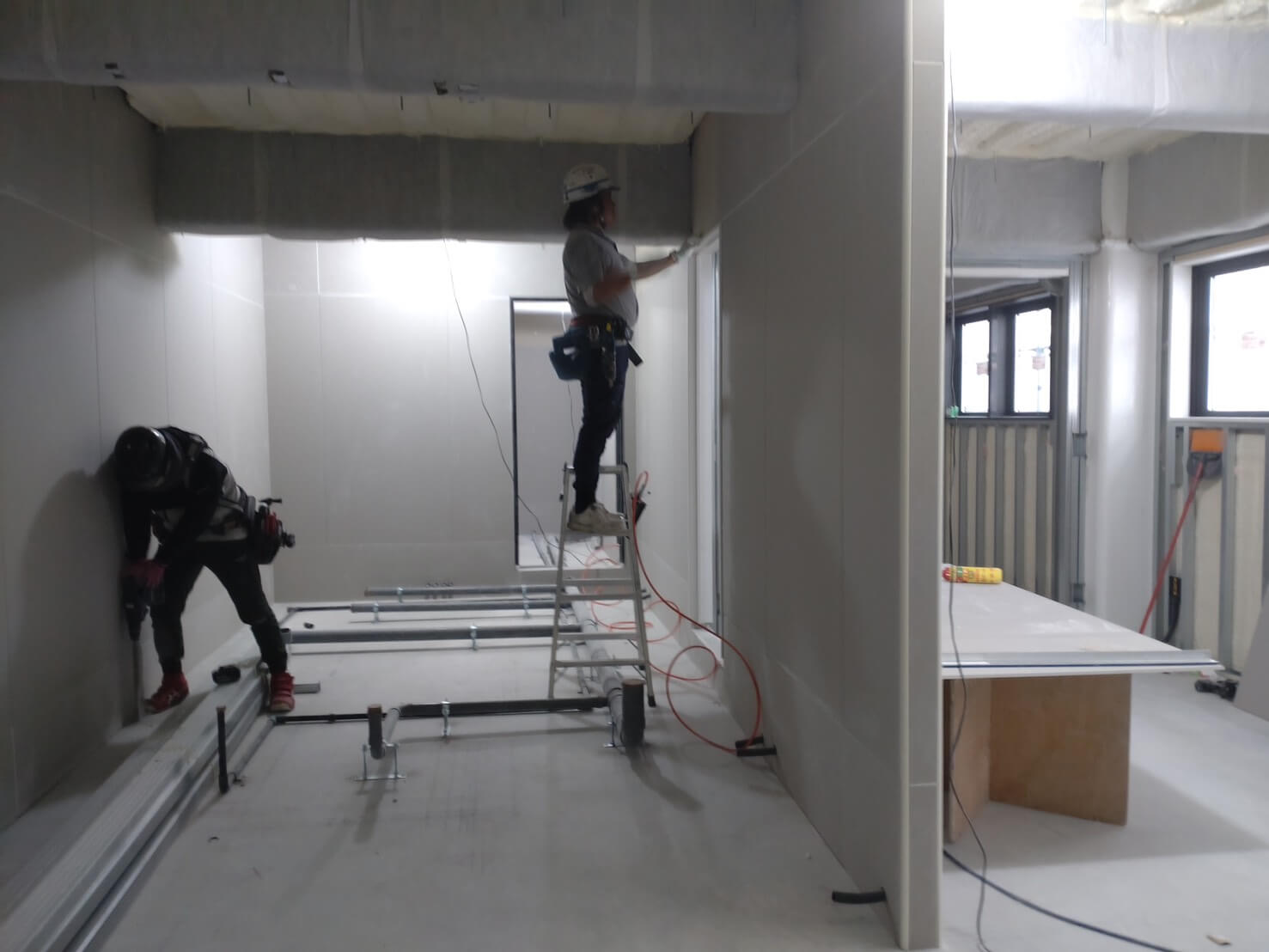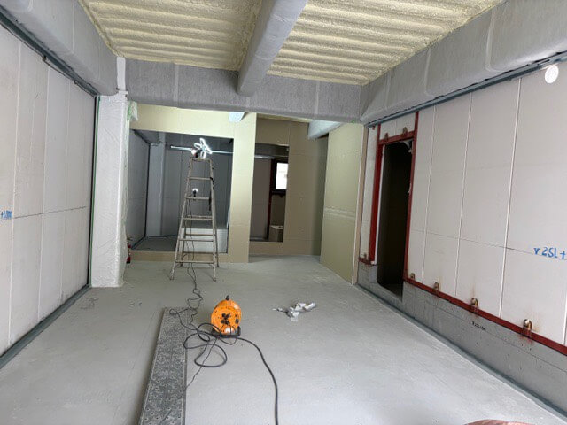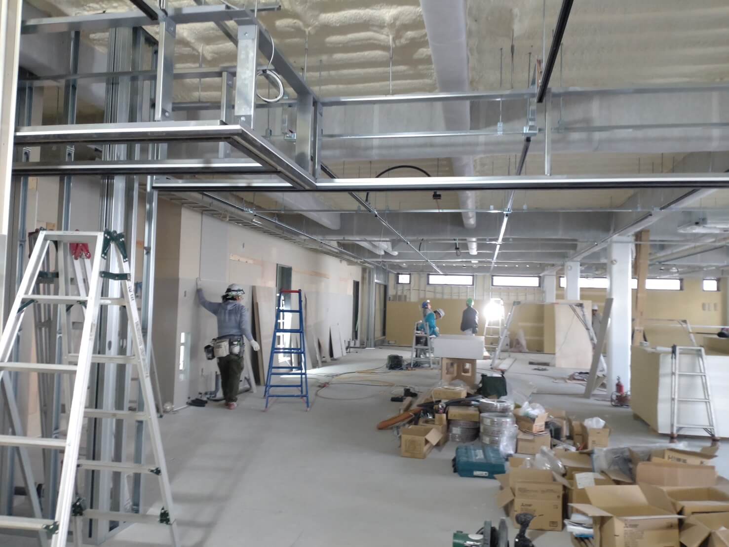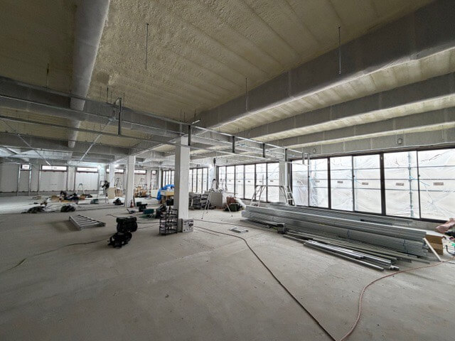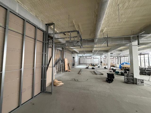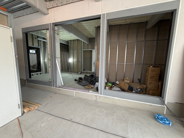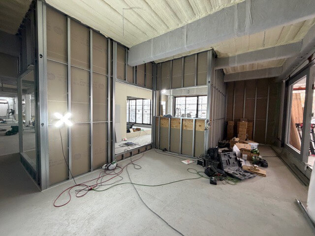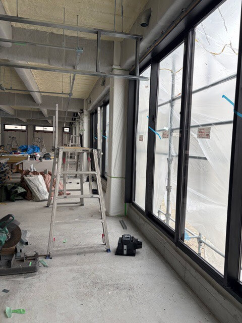 工事の段階もかなり進み、中の壁や窓などの設置も完了しました。