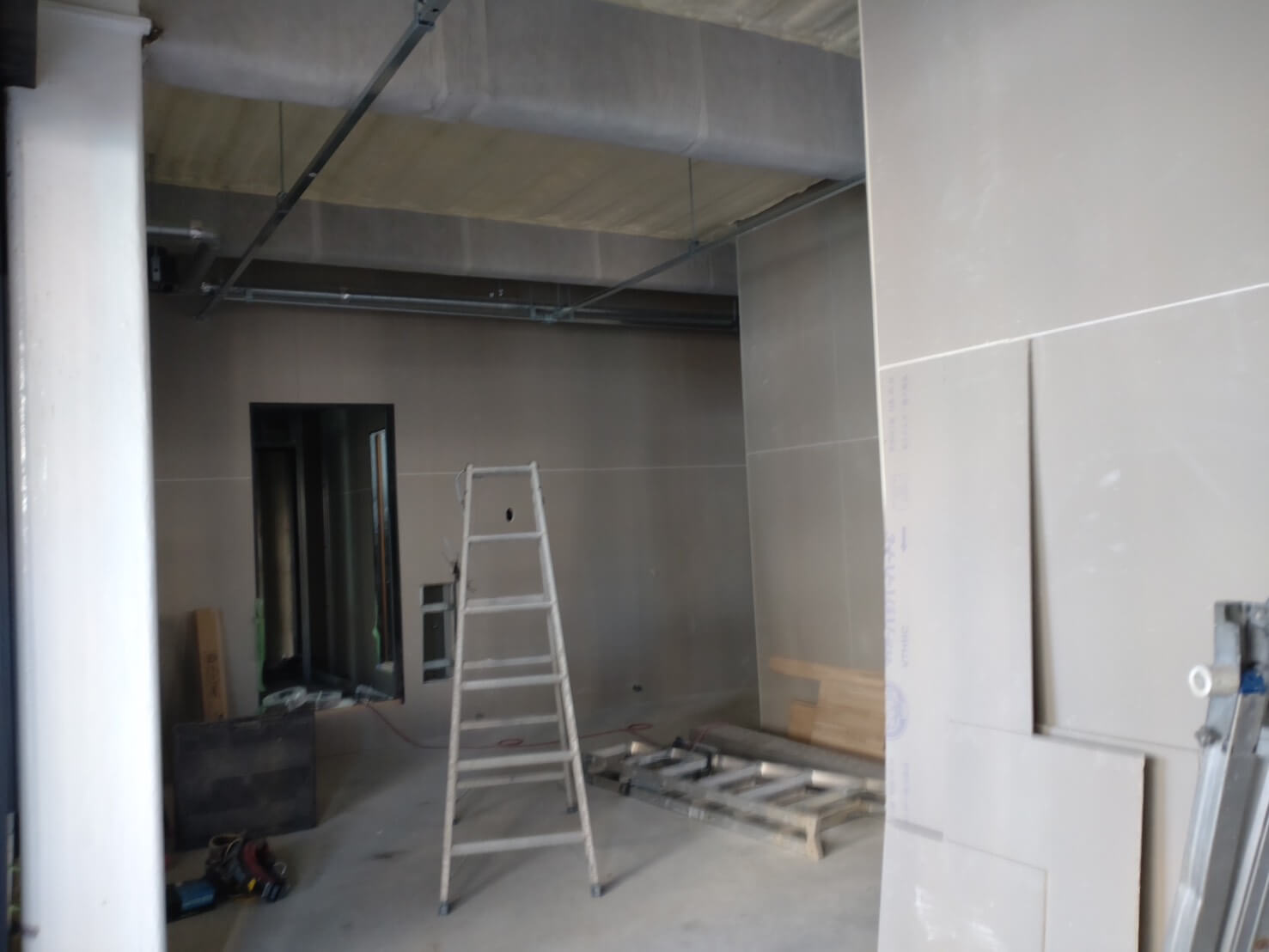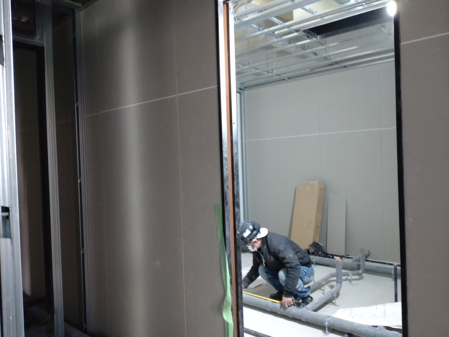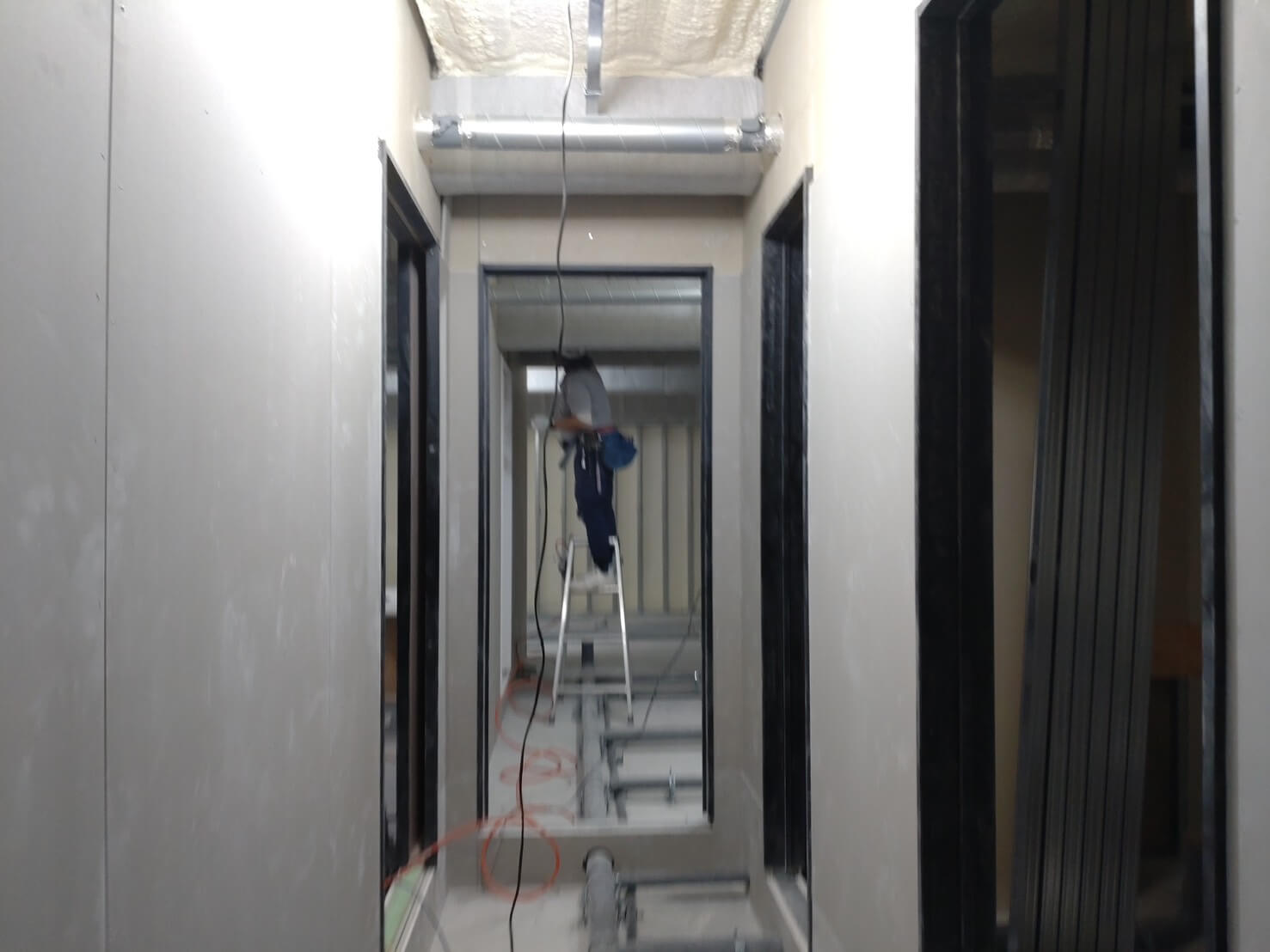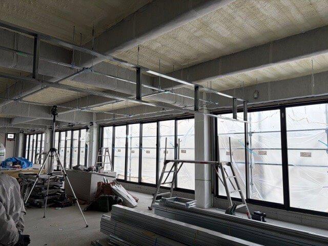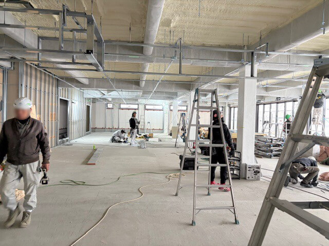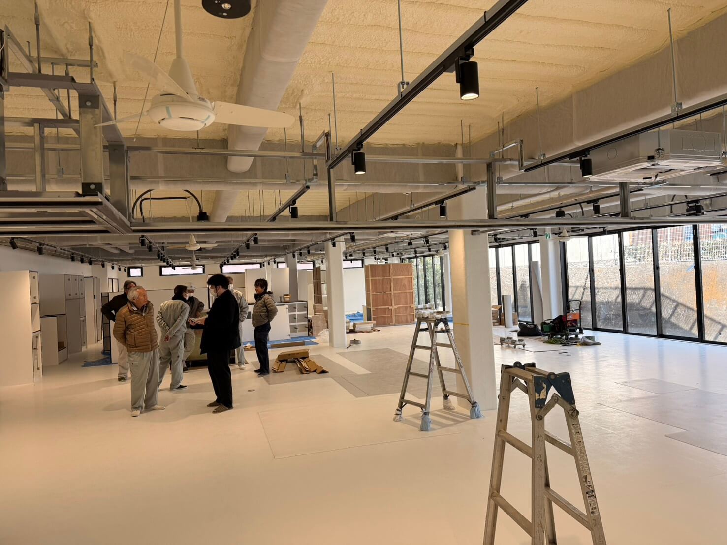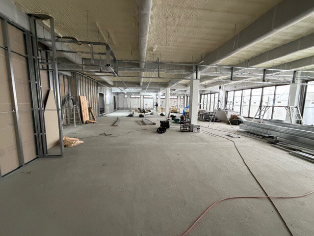 工事の段階もかなり進み、中の壁や窓などの設置も完了しました。