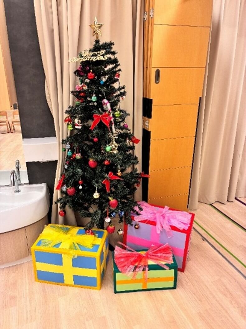 クリスマス会を通して、また一つ成長を見せてくれた新横浜ほいくえんのお友だち。クリスマスツリーの下にはサンタさんからのプレゼントが・・・☆