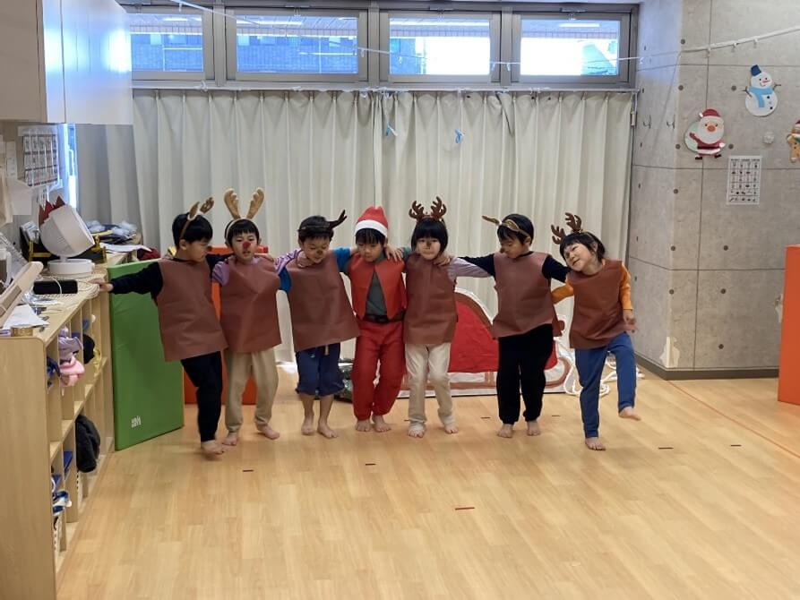続いては三部です。ぞう組らいおん組による英語劇「Rudolph~the red-nosed reindeer」です。