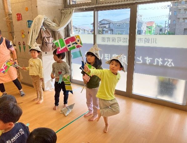 発表を見ている時には「〇〇組さんのこいのぼりかっこいいね」「なんだか難しそう!」