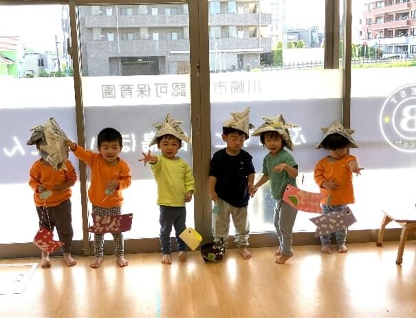 発表のあとにはこどもの日に関する絵本を読み、クイズもしましたよ!「こどもの日に食べるおやつは?」「どうして兜を被るの?」等みんなで楽しくこどもの日について知れました。