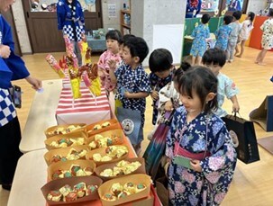 浴衣や甚平を着て登園するだけでお祭り気分でワクワクしますね。