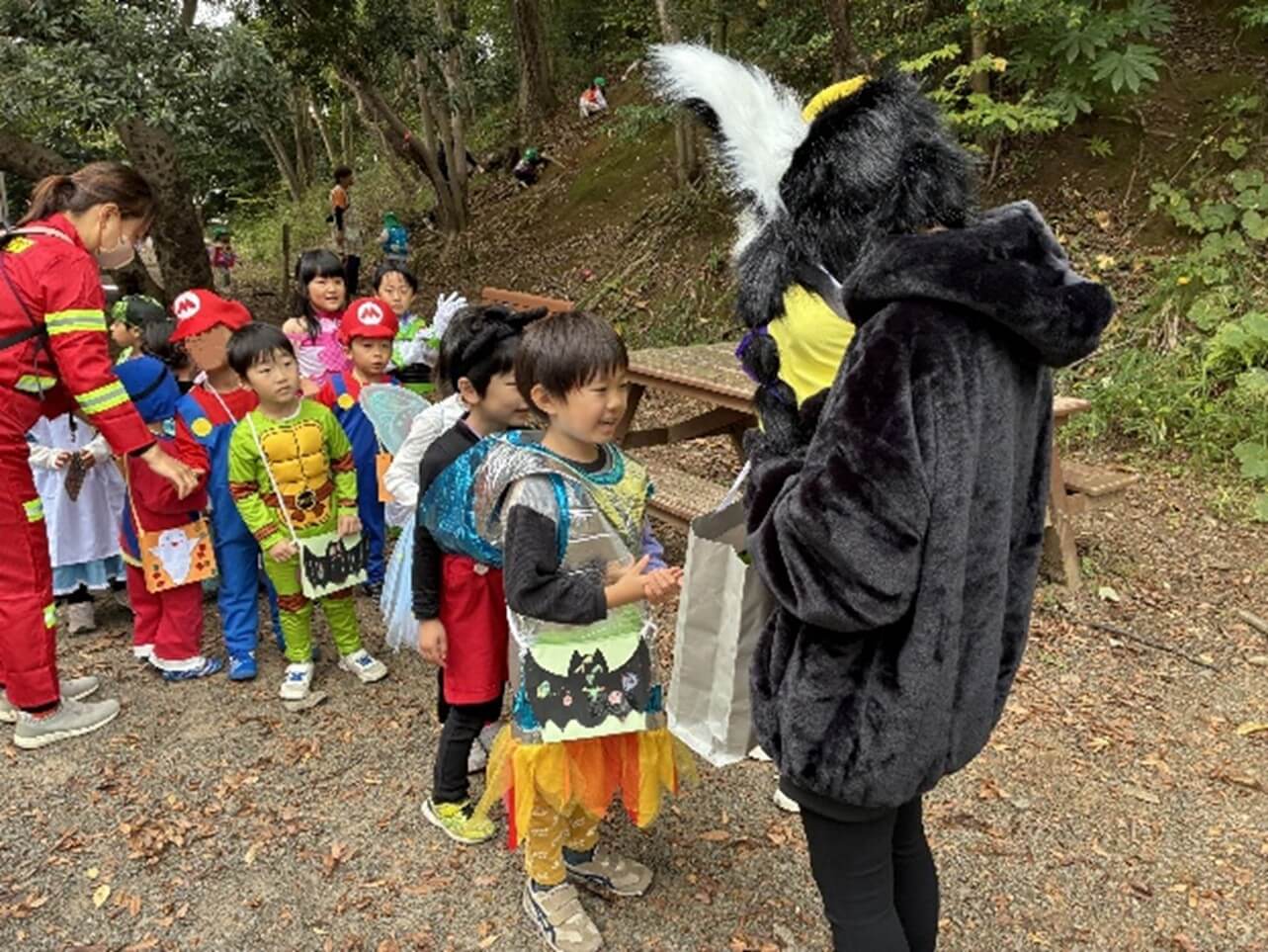 公園内を奥へと進んでいくと仮装した英語講師がみんなを待っていてくれました。