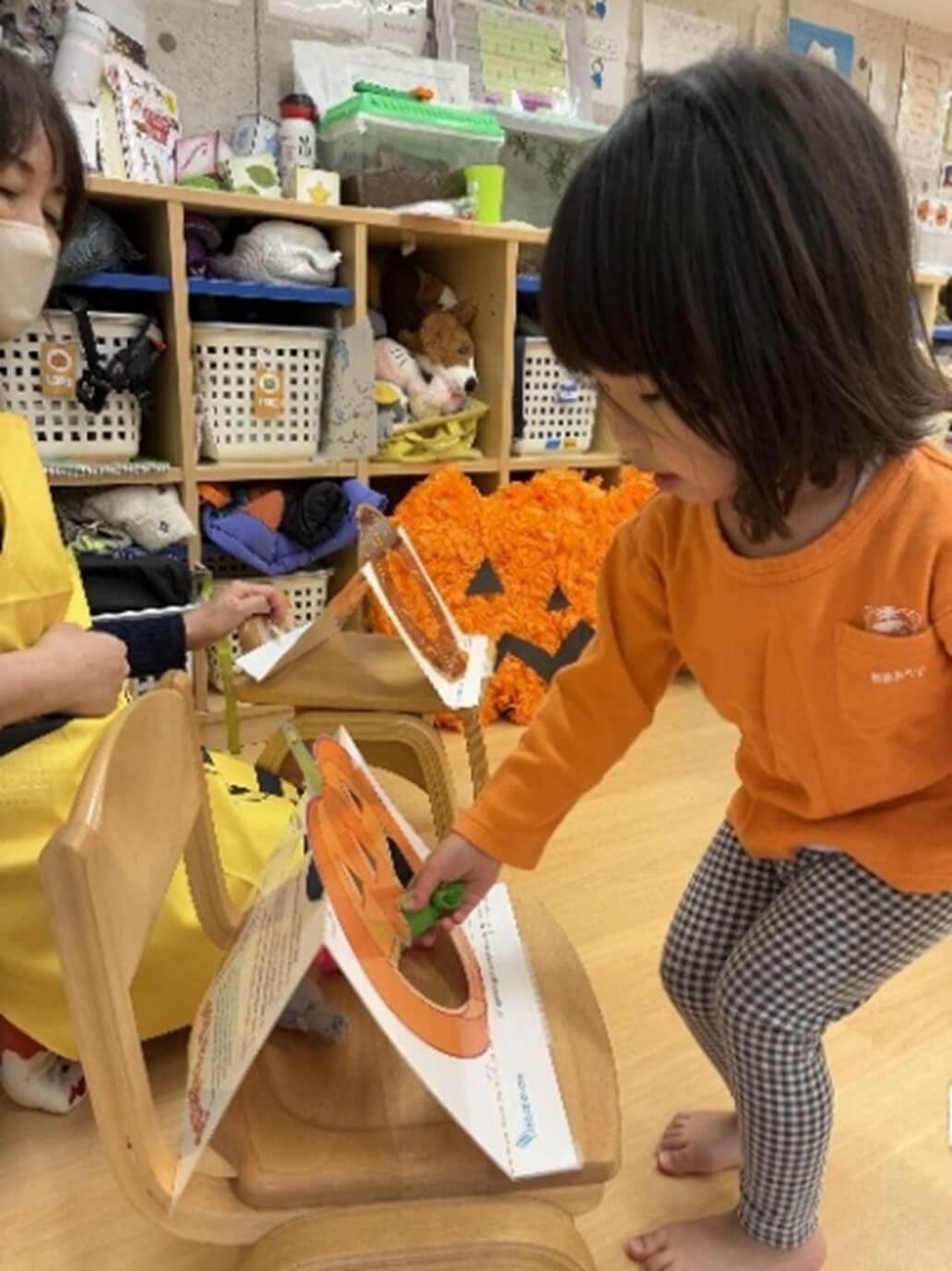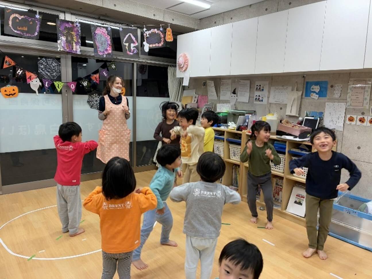 部屋の飾りもEnglishサークルタイムも、今月はハロウィンバージョン♪