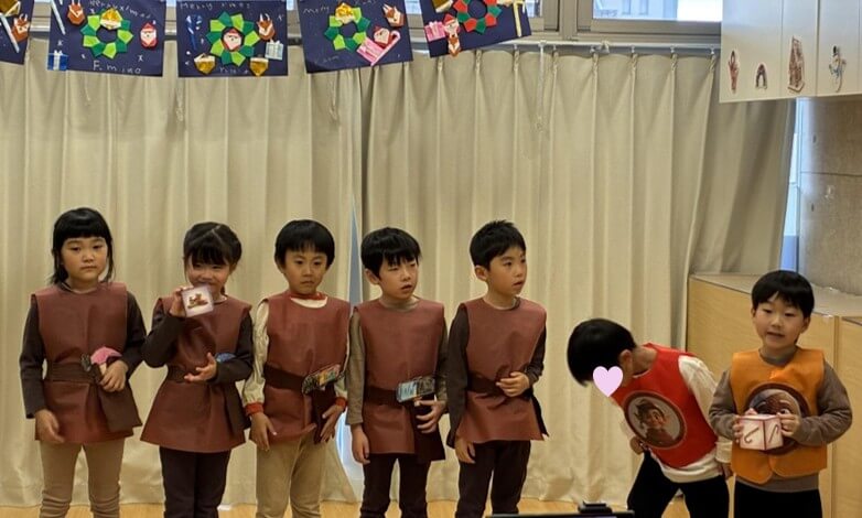 最後は、4歳児ぞう組、5歳児らいおん組による英語劇「X’mas Build Quest」です。