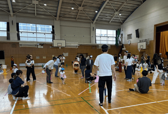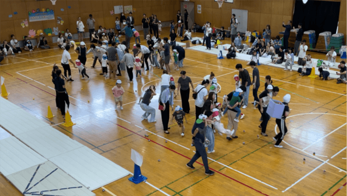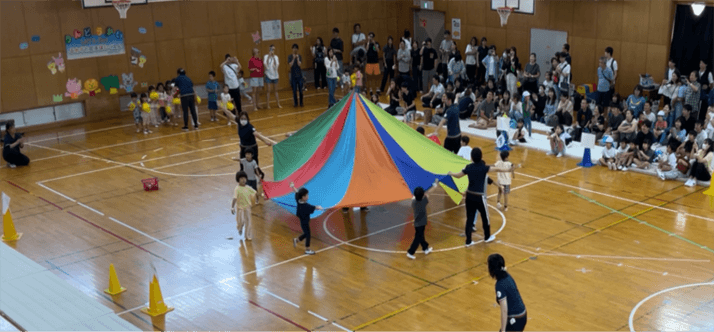 はじめての異年齢親子競技「Let’s toss!」ではチーム対抗で玉入れを行いました!子ども達も、参加された保護者の皆様も、息が切れるほど白熱したとても楽しい玉入れになりました!