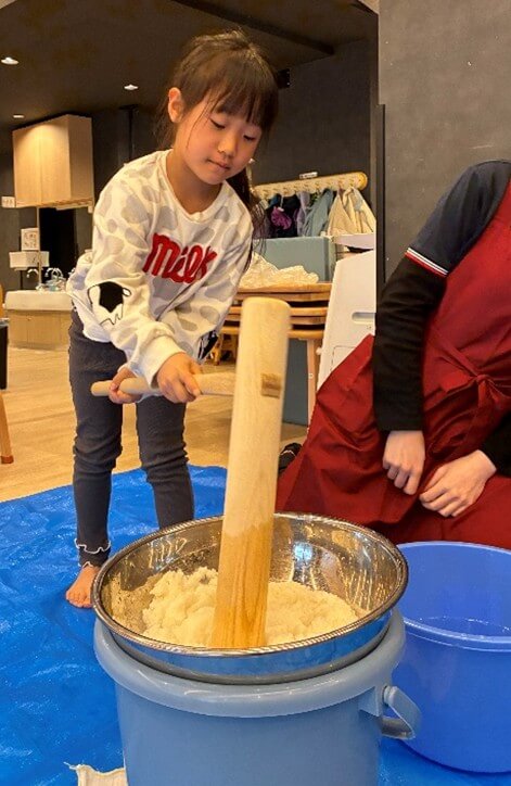 みんなで一生懸命ついたお米は、もっちもちのお餅に変身!!