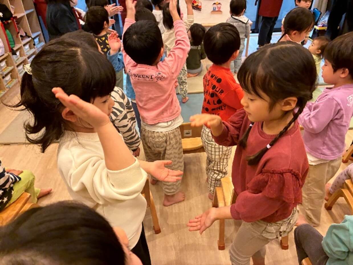 少し難易度の高い手遊びでしたが、難しい~!!と言いながらも、大盛り上がりで楽しんでいました!
