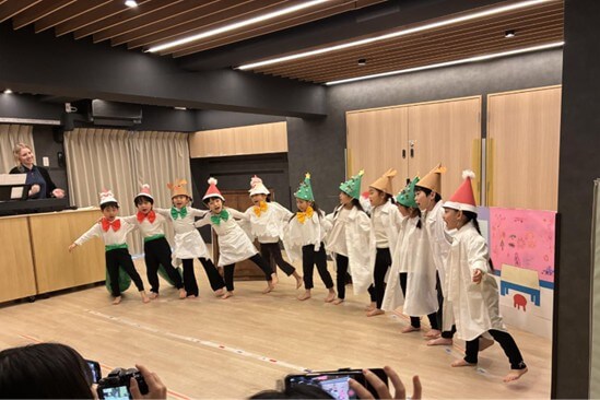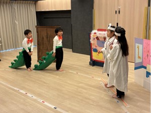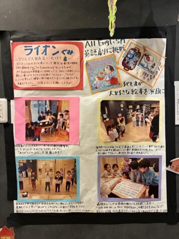 今回は綱島二階ほいくえんのクリスマス会の5歳児ライオン組英語劇の様子をご紹介します。