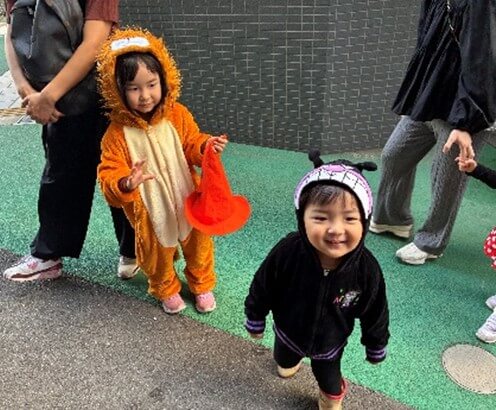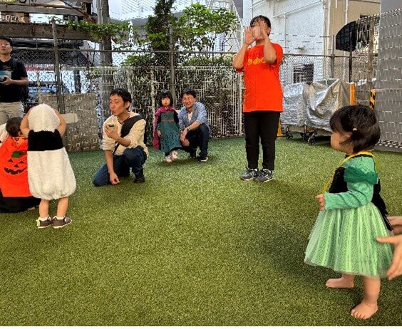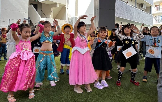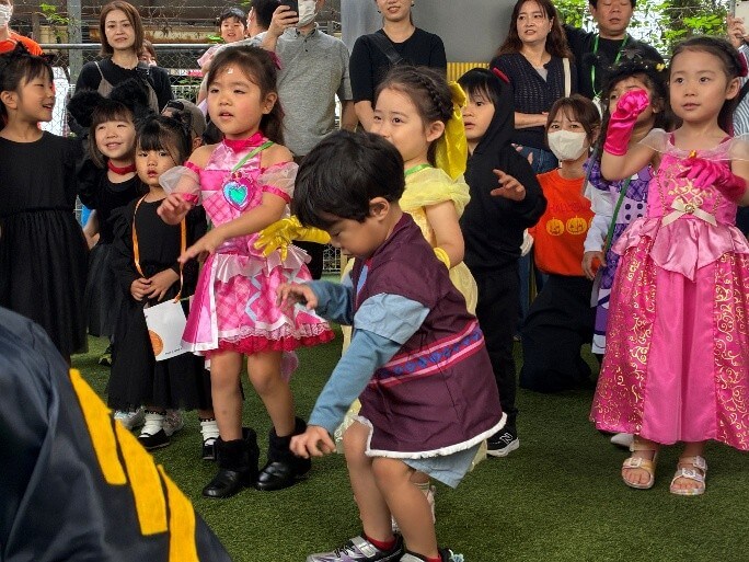 まずは園庭でビッキー先生と一緒にハロウィンダンスを楽しみました♪