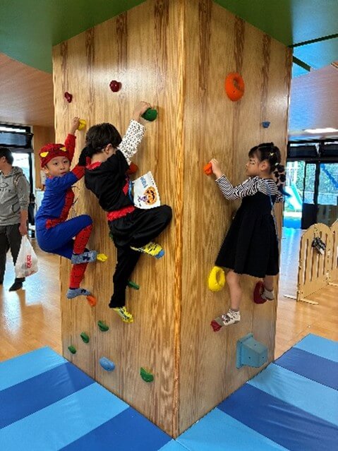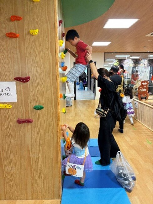 おうちのひとと一緒に楽しむボルダリングコーナー!